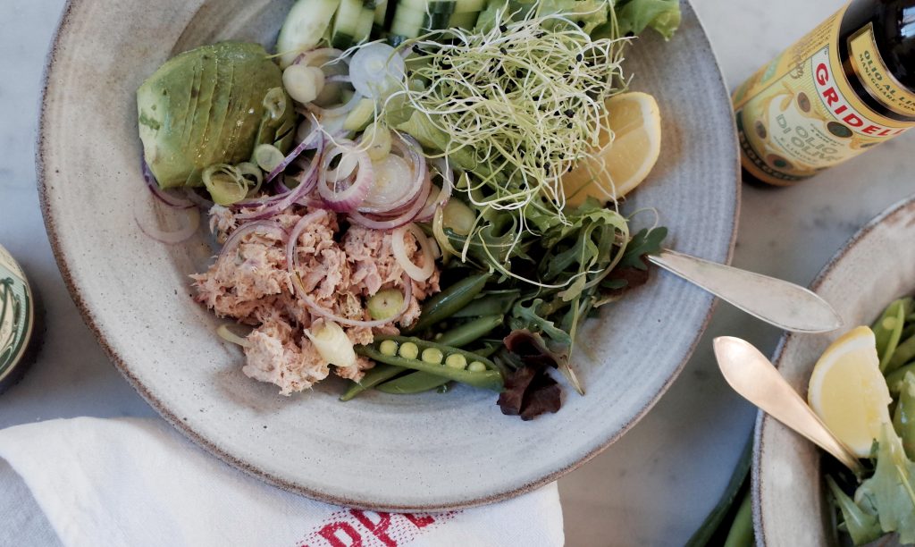 En fräsch och matig sallad med krispiga sockerärtor, krämig avokado och grönsallad, toppad med en smakrik tonfiskröra på kapris, selleri, gul lök och en skvätt Aceto di vino Rosso –…