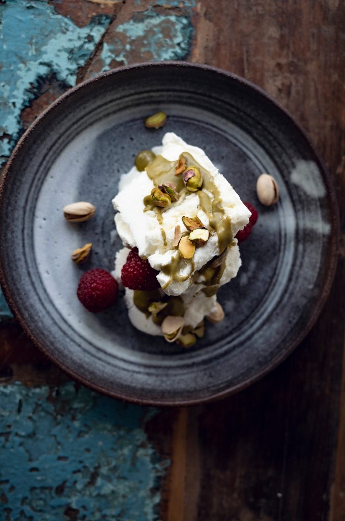 Len vaniljglass serverad med varm pistagecrème, knapriga pistagenötter och en touch av flingsalt – en snabb och lyxig dessert. 4 personer